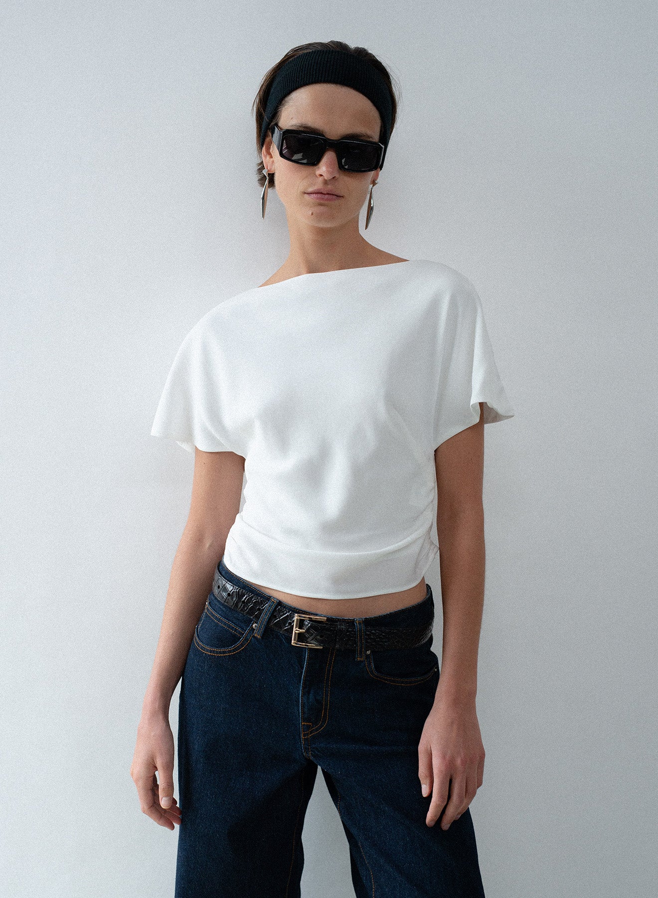 The forever black midi, elevated through fluid drape, delicate ruching, and considered gold detailing.