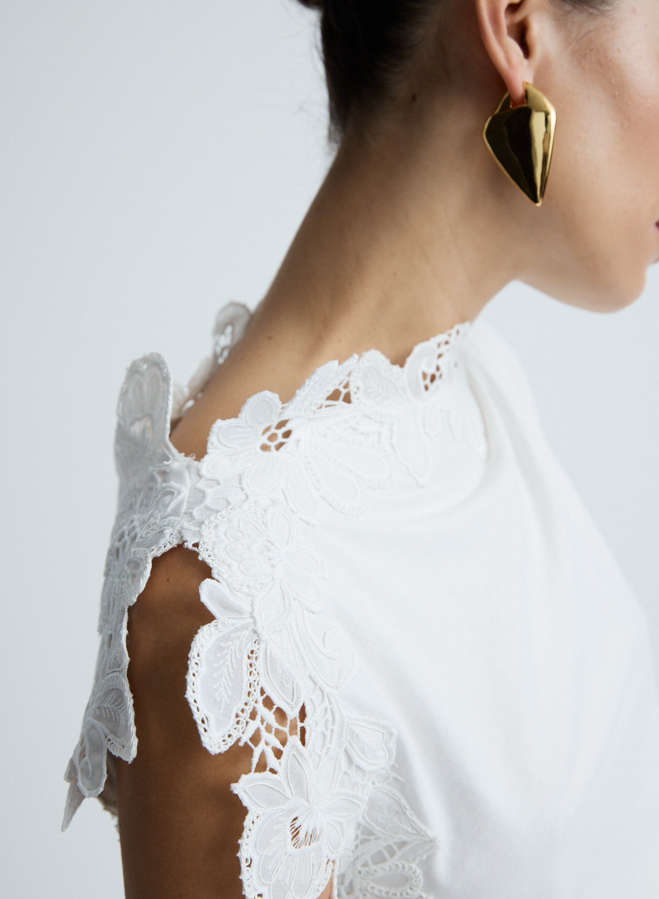 · Guipure lace as a detail pieces to scallop the edge of the neckline and shoulder
