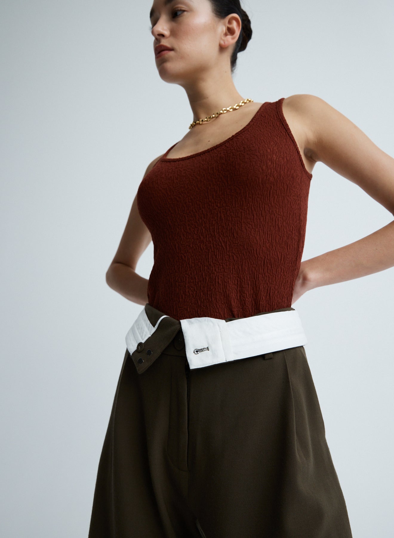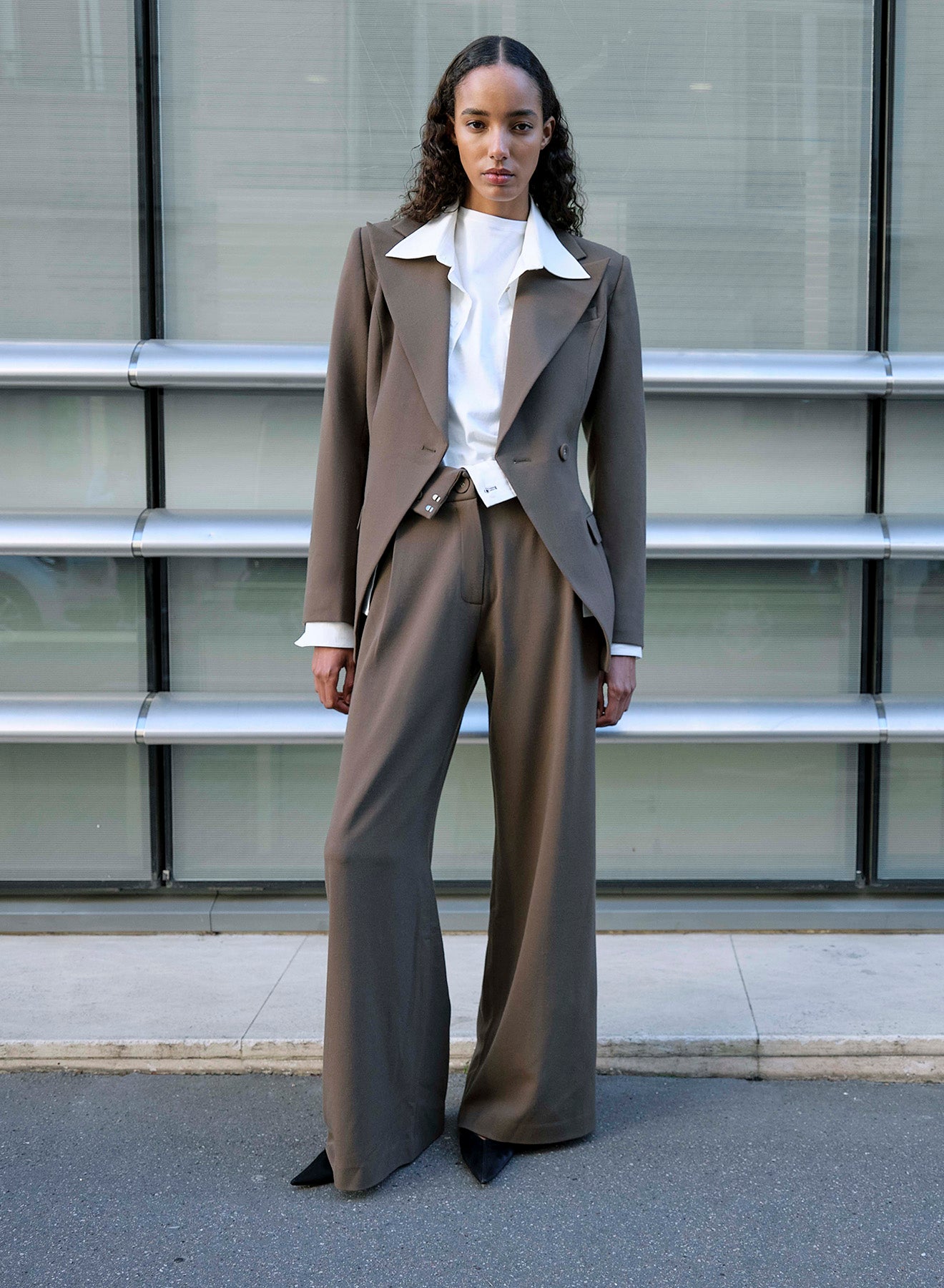 The Nyx Pants in Loden offers a refined take on modern tailoring, cut in luxurious Italian wool and fluid wide-leg silhouette. Detailed with a contrast waistband, the Nyx are designed to transition seamlessly between seasons.